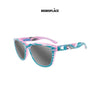 The Shark Week Premiums feature an ocean blue front over a soft sunset pink base—a familiar San Diego color combo. Down the outside of each arm swims a splashing great white shark backed by cresting waves and a brilliant pink sunset sky. The arms’ interiors feature a friendly mix of sharks from the point of view of a scuba diver (if you’ve ever looked upwards while underwater, you know what we mean). Polarized silver scale lenses and hardware round out this oceanically awesome pair of shades!