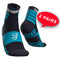 Is the tarmac burning up and the sun beating down? Developed alongside our fastest athletes, the thermoregulating properties of the 4th generation Pro Racing Socks Ultralight Run Low have your back. Or rather, your feet. The featherlight, technical mesh is designed to fit like a second skin, with exceptional ventilation to wick away weat and keep your feet fresh and dry, even in steamy conditions. The reviewed, wider toe box offers an ergonomic fit and improved proprioception, allowing the toes to expand intuitively on landing for a natural, fluid stride. A special knit around the ankle, lighter than the standard running sock, offers gentle support as the tempo builds. Our characteristic arch support prevents the fabric from twisting and irritating in the heat, while a terry cloth reinforcement around the big toe saves you from blackened nails as the distance builds. The special 3D.Dots and Flat.Dots technologies of this ultralight model save on volume and weight but still provide high performance benefits. Six targeted dots offer added protection over the base of the Achilles tendon. Underfoot, a smart pattern – 50% 3D.Dots, 50% Mesh.Dots – not only cushions impact, it also provides added grip in the shoe, boosts venous return through gentle micro stimulation and encourages airflow between the dots for extra ventilation. The anatomic fit and technologies are specifically developed for the rigours of road running, while the low cut and mesh fabric leave no place for overheating. The ergonomic tab at the rear adds comfort and style and, should you ever forget you’re heading out for a run, the discipline is discreetly embroidered on the inside. Slide your feet into these ultra-light, ultra-low socks and take on the Great Wall or Kauai marathons without a moment’s hesitation.